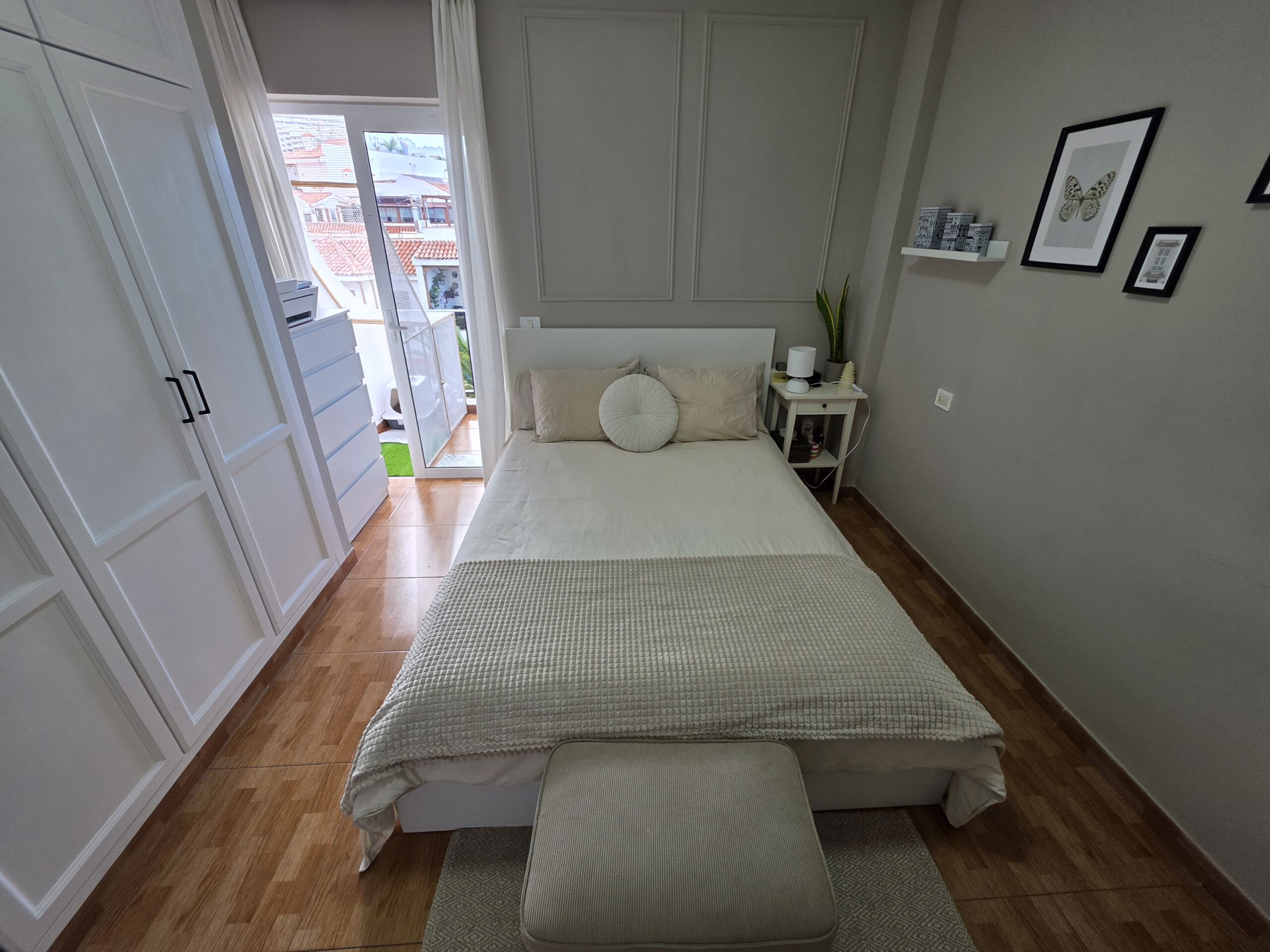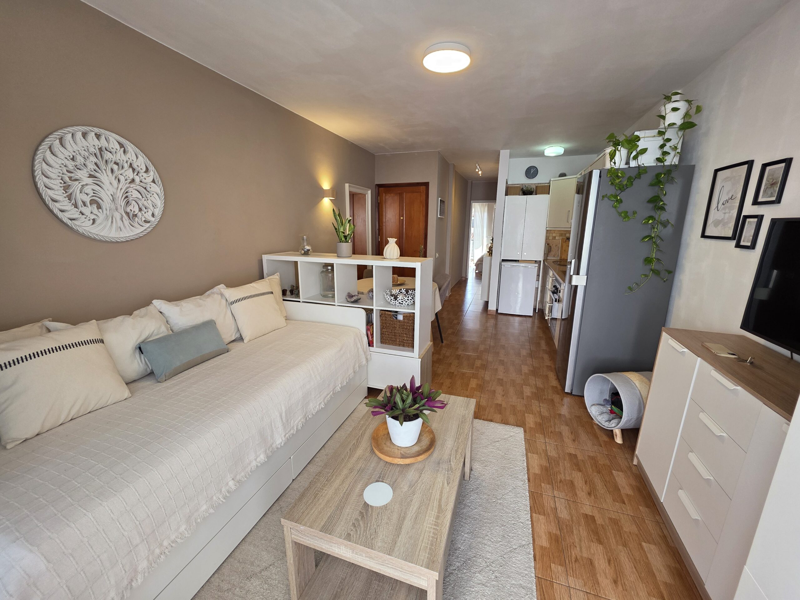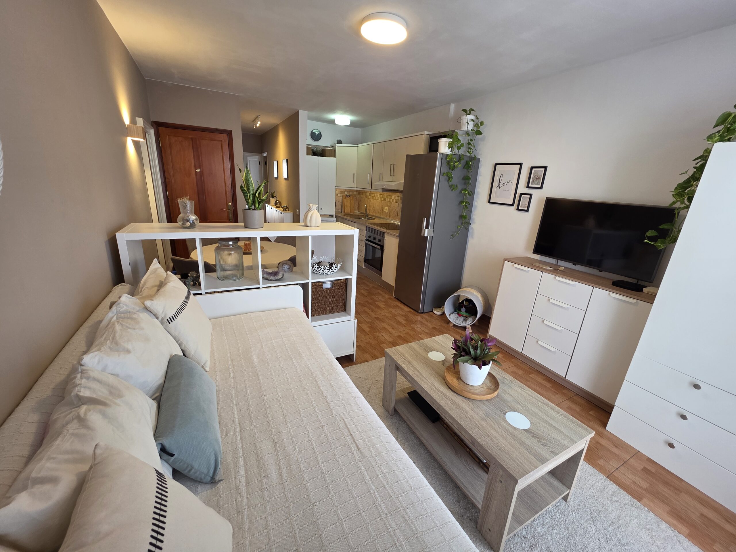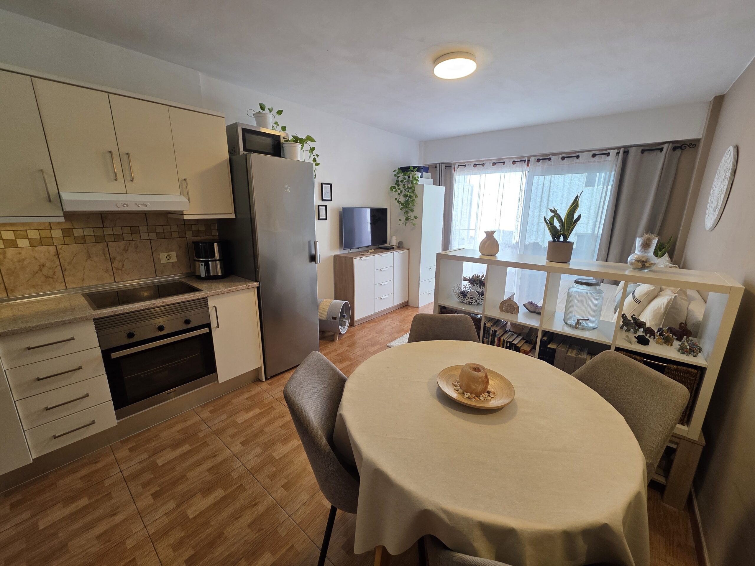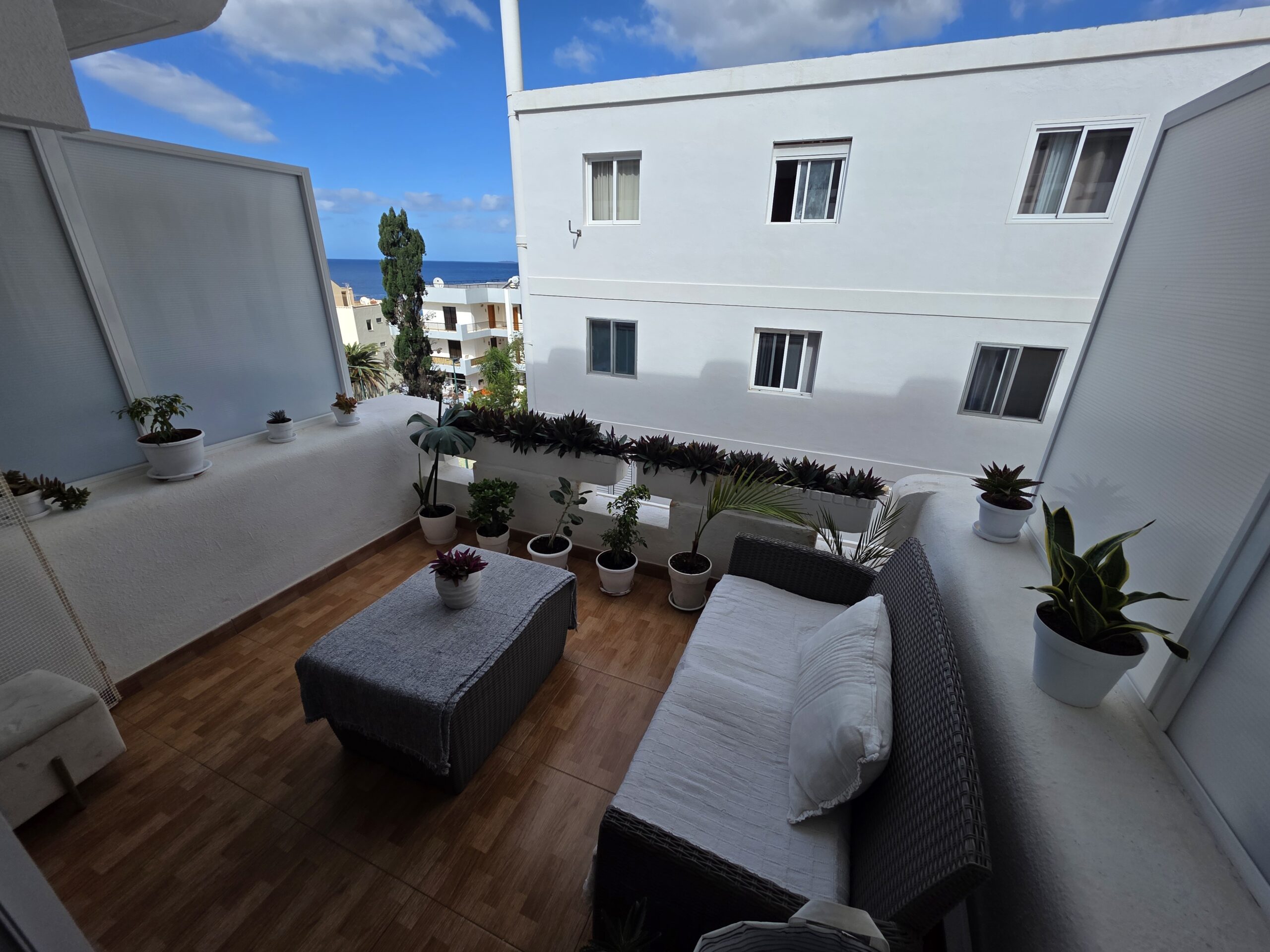 Parduodami patrauklūs, šviesūs apartamentai prestižinėje Los Gigantes vietoje, Concanasa komplekse, Tenerifėje. Vos žengę pro duris atsidursite miesto širdyje, kur viskas pasiekiama pėsčiomis: parduotuvės, restoranai, jaukios kavinės ir kasdienės paslaugos. Butas pasižymi moderniu, atviro plano išplanavimu – virtuvė harmoningai sujungta su svetaine, sukurdama erdvią ir jaukią gyvenamąją zoną. Iš svetainės patenkama į dvi privačias terasas, kuriose galėsite mėgautis daliniais Atlanto vandenyno vaizdais bei gyvybinga centrinės aikštės panorama. Tai puiki pusiausvyra tarp ramios pakrantės atmosferos ir miesto energijos. Apartamentus sudaro vienas erdvus miegamasis ir vienas vonios kambarys, todėl šis būstas idealiai tinka nuolatiniam gyvenimui, atostogų rezidencijai ar kaip patraukli investicija nuomos rinkoje. Centrinė lokacija, lauko erdvės ir funkcionalus išplanavimas daro šį pasiūlymą išskirtiniu viename geidžiamiausių Tenerifės pakrantės miestų.
